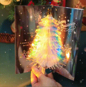 De opvallende donkergroene voorkant met gouden tekst contrasteert prachtig met de lichte effecten aan de binnenkant. Op de achterkant is ruimte om je kerstwens te schrijven.