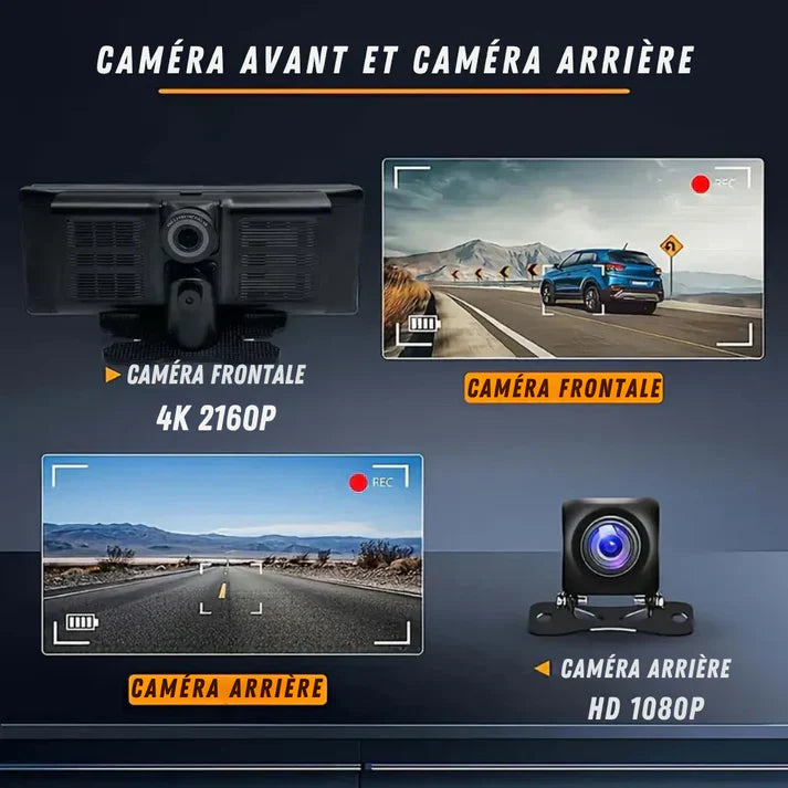 CarPlay-scherm met frontcamera | Ingebouwde 4K Dashcam – Verander uw auto in een verbonden model
