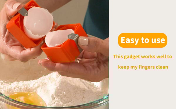 Eenvoudige en veilige eierkraker: breek eieren snel en schoon met één simpele knijpbeweging. Geen gebroken dooiers, gemorst eiwit of schaalfragmenten meer.