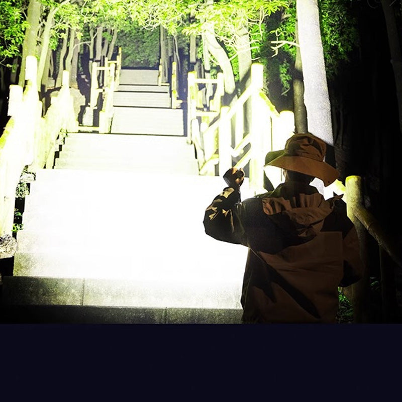 ULTRA-BRIGHT & WIDE-ANGLE ILLUMINATION - Featuring AI Pulse Optics System, this flashlight delivers 10x brighter light with a top-tier white laser cor and five-layer light-enhancing structure. Illuminate up to 300m² instantly—perfect for factories, large areas, or long-range tasks. Its wide-angle floodlight ensures uniform brightness across kilometers, making it ideal for industrial sites, outdoor events, or emergency use.