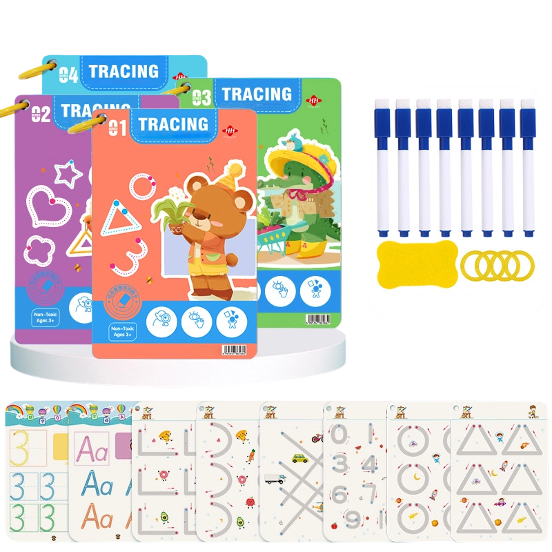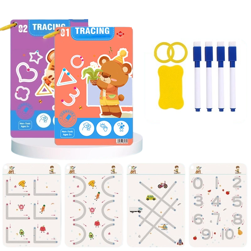 GEVarieerde cognitieve oefeningen – De set biedt diverse traceeractiviteiten die kinderen op verschillende vaardigheidsniveaus aanspreken. Van eenvoudige lijnen en vormen voor beginners tot bochten en bogen voor gevorderden: deze oefeningen stimuleren de cognitieve ontwikkeling op een leuke, toegankelijke manier, waardoor leren aanvoelt als spelen.