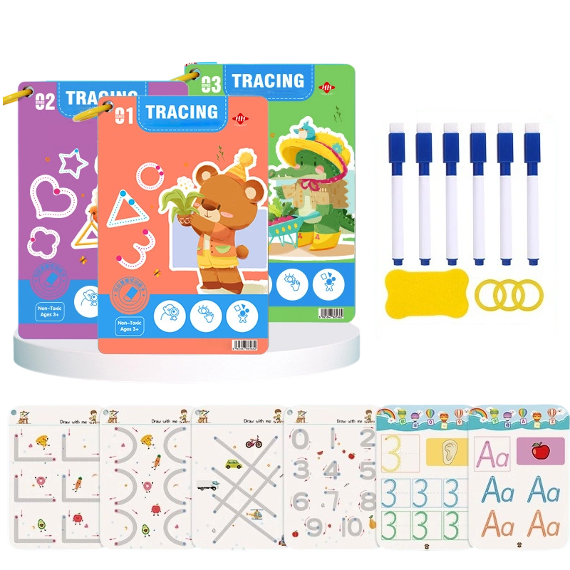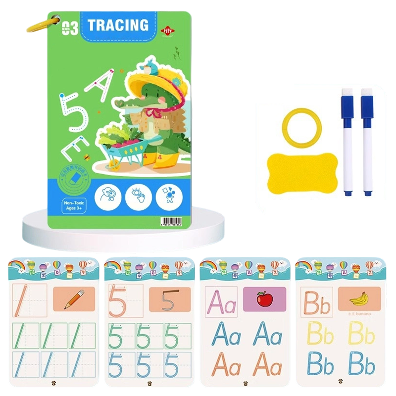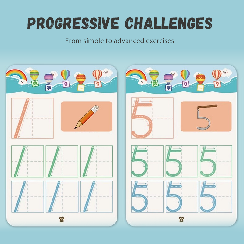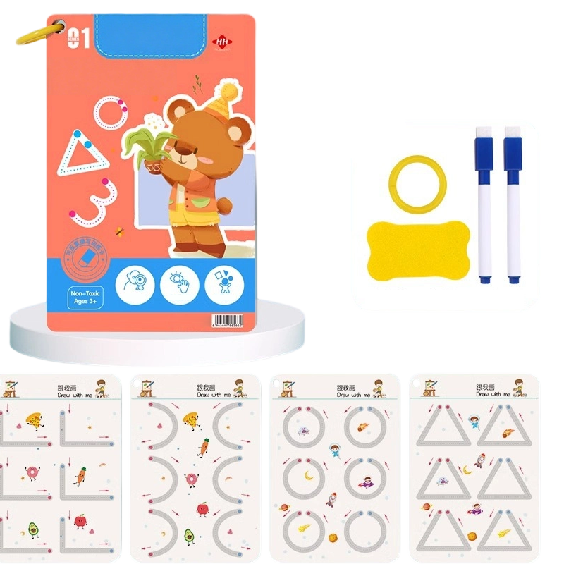 VOORBEREIDING OP SCHRIJVEN & ZELFVERTROUWEN OPBOUWEN – Door geleidelijk letters, cijfers en eenvoudige afbeeldingen te introduceren, bereidt de set kinderen voor op de eerste uitdagingen op het gebied van schrijven. Het voltooien van leuke overtrekoefeningen bouwt zelfvertrouwen op en stimuleert creativiteit, waardoor kinderen gemotiveerd worden om met enthousiasme complexere schrijf- en tekenopdrachten te verkennen.