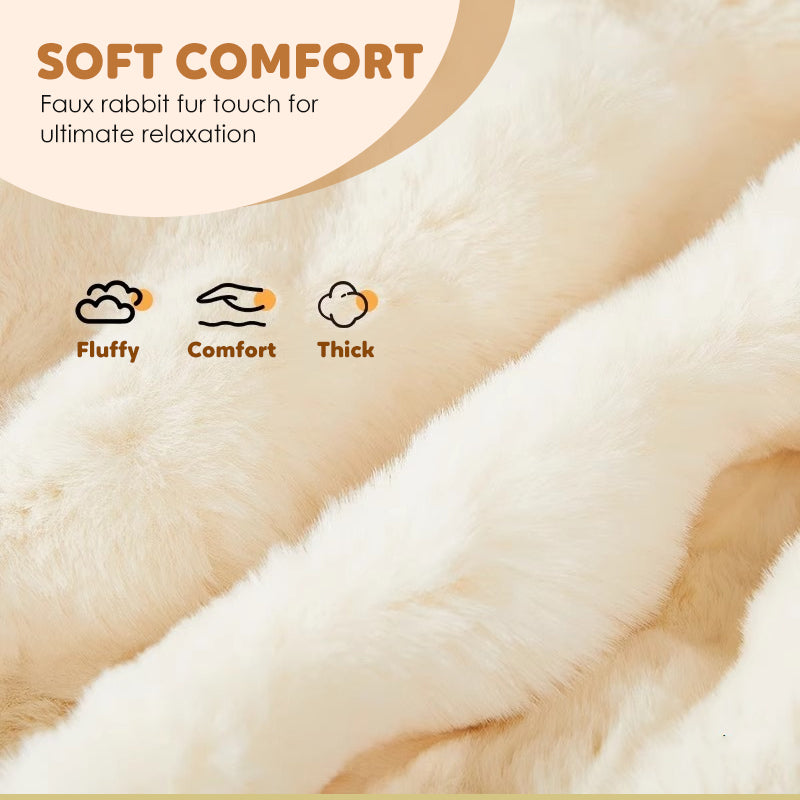 LUXUEUS IMITATIE KONIJNENBONT: Geniet van een ongeëvenaarde zachtheid en comfort. De premiumimitatie konijnenbonttextuur voelt heerlijk zacht aan op je huid en maakt van je bed een knus toevluchtsoord om te ontspannen, lezen of tv te kijken.