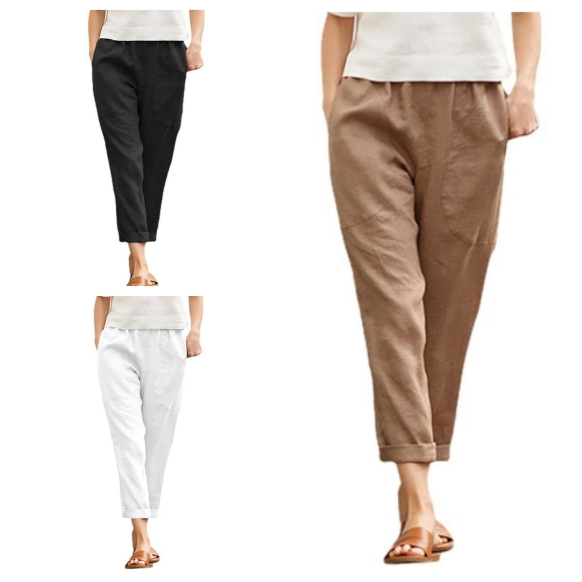 Deze losse damesbroek van linnen-katoen in grote maten is een klassieke trend en is eenvoudig en veelzijdig. Hij past perfect bij tanktops, crop tops, bloezen en zelfs casual T-shirts.